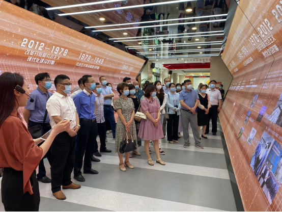 工作人员首先带领大家观看“红色印记”板块知识,详细讲述了中国共产党从1921年成立至今101年的伟大光辉历程,阐述了101年内国家所发生的重大历史事件及马鞍山市为之做出的突出贡献。跨过缓缓开启的“时光之门”,大家深入学习习近平新时代中国特色社会主义思想,回顾中国共产党党史及马鞍山红色历史,了解新时代组织工作、马鞍山市人才工作、学习全市先进基层党组织以及优秀个人的先进事迹。