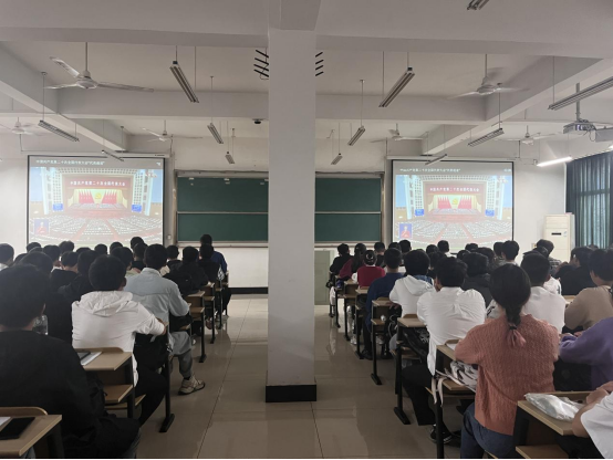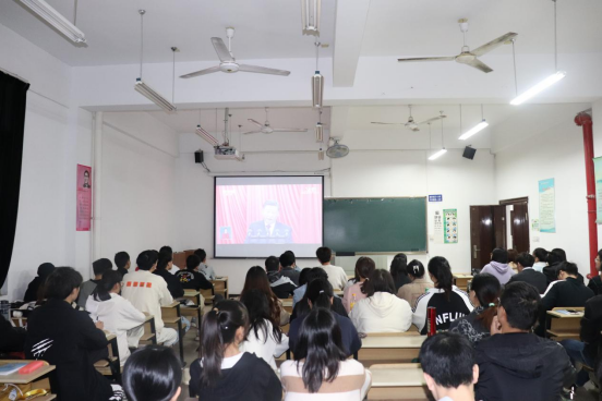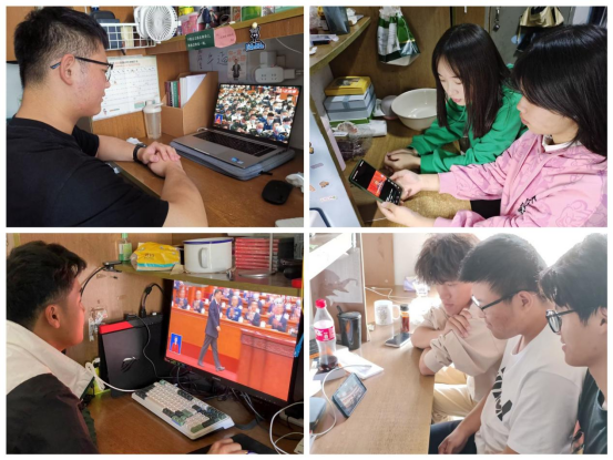 团学干部分别在数理楼303、403集中观看开幕会,其余同学以宿舍为单位集中观看学习。