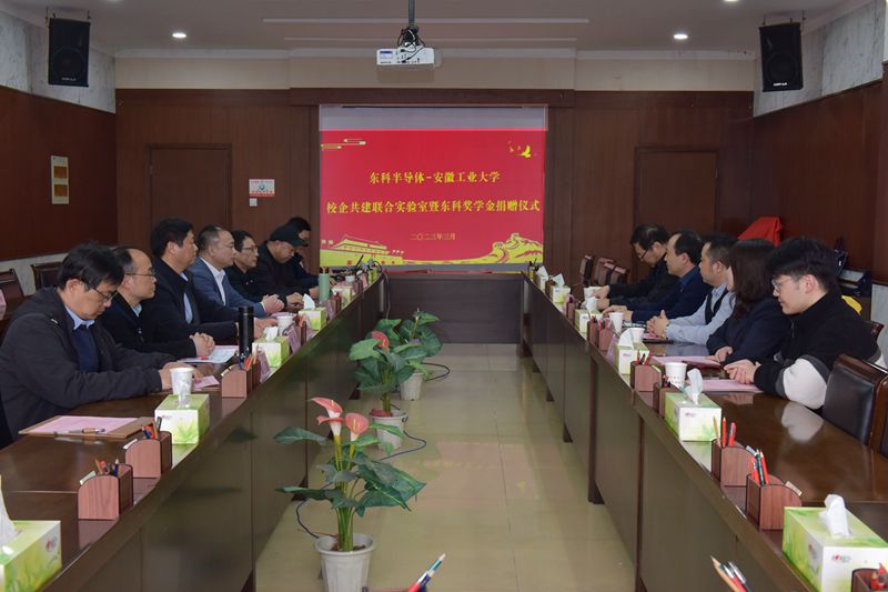 与东科半导体(安徽)股份有限公司举行校企共建联合实验室揭牌暨东科奖学金捐赠仪式。校党委常委、副校长曾杰,东科半导体(安徽)股份有限公司董事长谢勇,东科半导体(安徽)股份有限公司副总经理杨伟真,东科半导体无锡有限公司总经理赵少峰出席仪式,教务处、发规处、校友处、色动漫