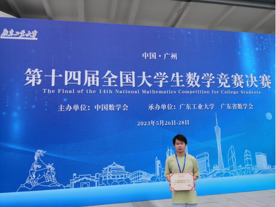 2019级数学与应用数学专业陶马成同学与来自包括北京大学、复旦大学以及中国科学技术大学等多所双一流高校在内的优秀学子同台竞技,获得数学专业类高年级组全国一等奖。实现了我校学子在该项赛事决赛中荣获一等奖的突破,也是继我校2022届数学与应用数学专业郁永伟同学荣获第十三届全国大学生数学竞赛全国二等奖后我校学子再次荣获国赛奖项。
