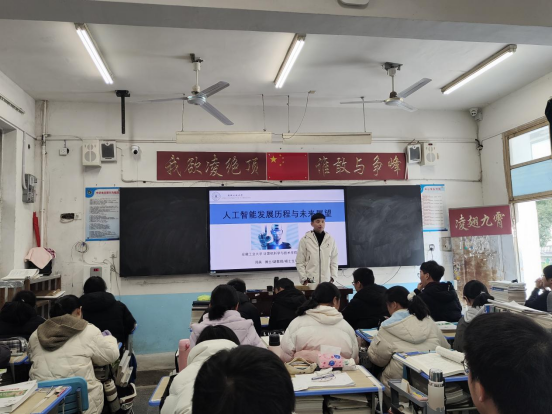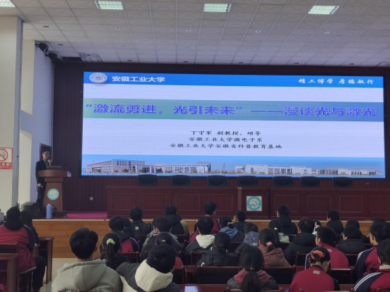 在浮山中学、宏实中学,周昊以“人工智能发展历程与未来展望”为主题进行科普报告,他详细介绍了人工智能的发展历程,与同学们探讨了人工智能行业的现状,包括不同领域的应用案例、行业格局以及产业链结构,使同学们对人工智能有了更加全面的认识。鼓励学生面对人工智能带来的挑战与机遇,具备批判性思维能力,学会理性分析,把握未来趋势,为个人职业生涯做出明智的选择。在枞阳中学,丁守军以“光与激光”为主题进行科普报告,深入浅出地介绍了光与激光的发展历程、应用领域以及未来趋势。他通过现实生活现象和光学原理结合起来,以新颖的切入点为学生们带来新奇的知识体验,让学生对光学的认识更加深刻,点燃了同学们探索未知的热情,现场洋溢着浓厚的学习氛围。
