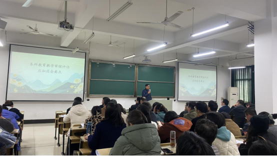 最后,副院长李文喜针对2025年本科教育教学审核评估工作方面做了宣传动员,并从审核评估背景和意义、原则与目标、材料准备、评估程序与时间节点等几个方面解读审核评估实施方案,并对审核评估工作进行了详细部署。