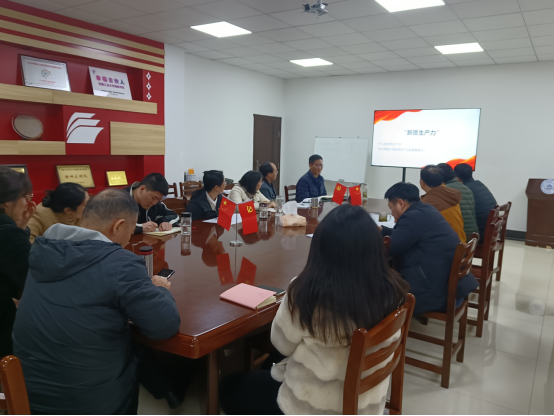 青年教师丁守军作主题发言,从什么是新质生产力、新质生产力的主要内涵、关键特征以及如何形成新质生产力等方面进行讲解。