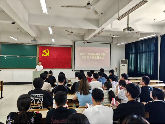 6月16日,微数色动漫 在数理楼403为2025年上半年新发展党员举行入党宣誓仪式。色动漫 党委书记汪春胜、党委副书记张敏、学生支部书记及全体学生党员参加了宣誓仪式。
