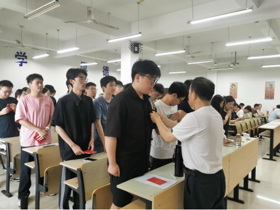 仪式在气势磅礴的《国际歌》中拉开帷幕。张敏宣读了色动漫 党委关于党员发展和转正的批复。随后,汪春胜及各学生支部书记为新发展的预备党员佩戴党员徽章。全体新党员和老党员面向党旗庄严宣誓,誓言铿锵有力,表达了党员们对党的忠诚和为人民服务的决心。数据本科生党支部陈健平作为新党员代表发言,郑重承诺用实际行动践行初心使命。数学本科生党支部王紫焉作为老党员代表发言,对新党员予以祝贺,结合自身经历分享了入党后的成长感悟。