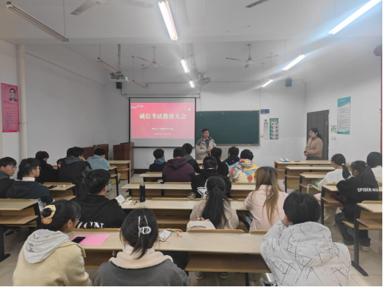 学生违纪处分办法》等规定,教育引导学生自觉遵守考试纪律,诚信应考。会上,各年级辅导员还从交通出行、反诈骗、不良网贷等方面进行了安全教育。