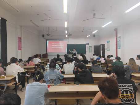 青年骨干教师戴少刚博士开展“春风送‘理’”专题讲座,全体学生会骨干、各班级团支书参加会议。