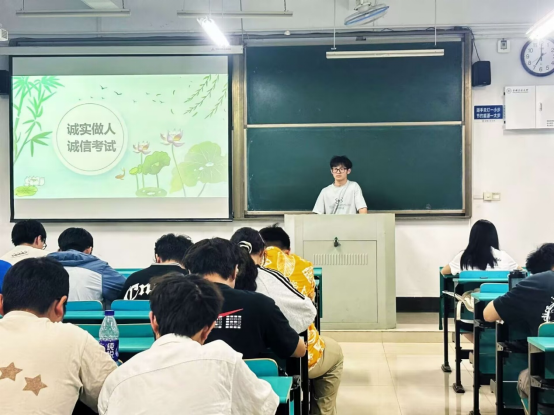 在主题班会上,各班充分利用精心制作的PPT,以图文并茂的生动案例分析和妙趣横生的视频展示为载体,引领同学们深入探寻诚信的丰富内涵。在互动环节中,围绕“大学生如何践行诚信”这一话题,同学们结合自身学习生活实际分享感悟,探讨践行诚信的有效途径,在热烈的讨论氛围中,对诚信的理解愈发深刻。学生许学为表示:“诚信就在我们身边,每一个小选择都关乎诚信。作为青年学生,除了日常学习生活中坚守诚信原则,在学术研究中更要坚守学术道德底线,以诚信为基石,筑牢学业大厦。”随后,各班发放了精心设计的诚信承诺书,纸张上印着醒目的诚信标语与宣誓词。同学们纷纷拿起笔,在承诺书上郑重签下自己的名字。