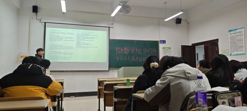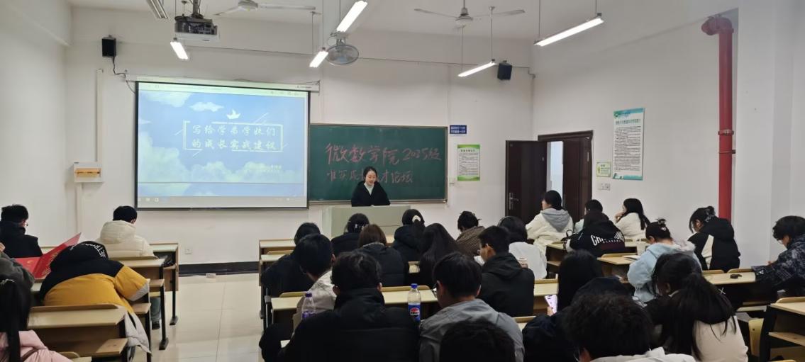 关工委联合学生工作办公室举办“唯实”学生成长成才论坛(第八期)。本次论坛特别邀请2022级数学与应用数学专业王武、晏萌萌担任主讲人,2025级数学专业新生全程参与,辅导员周文潇主持。