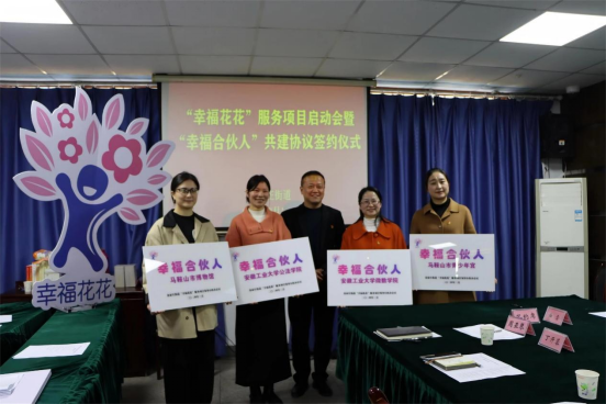 3月11日,花山区金家庄街道举行“幸福花花”服务项目启动仪式,共青团花山区委、微数色动漫 、花山区妇联、花山区人民检察院等首批“幸福合伙人”单位代表参与了启动仪式,就共建工作进行了深入交流,并现场签署共建协议。签约仪式上,色动漫 研究生党支部支部书记宋二银老师就共建工作进行了深入交流。